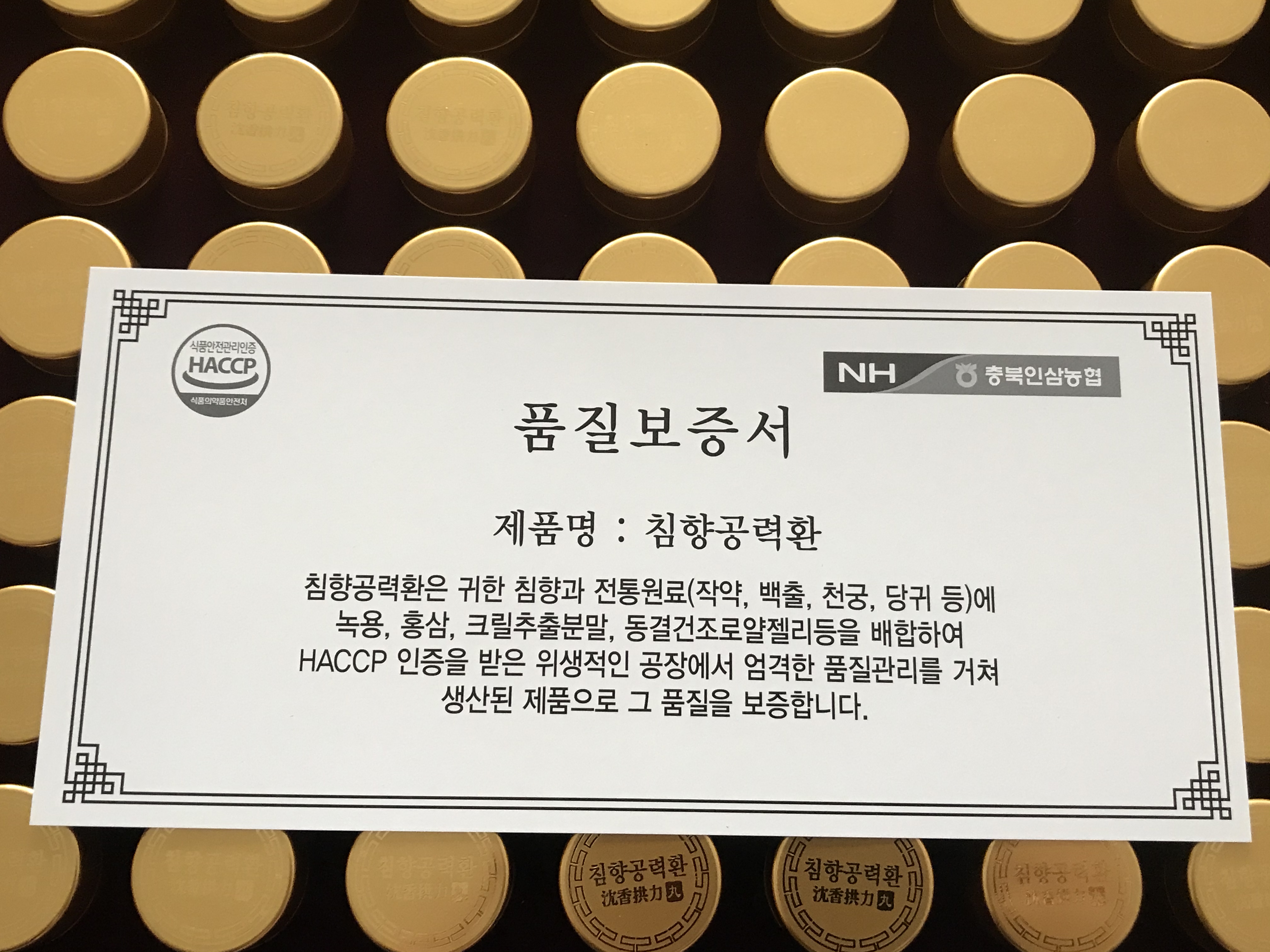 농협 침향공력환 품질보증서