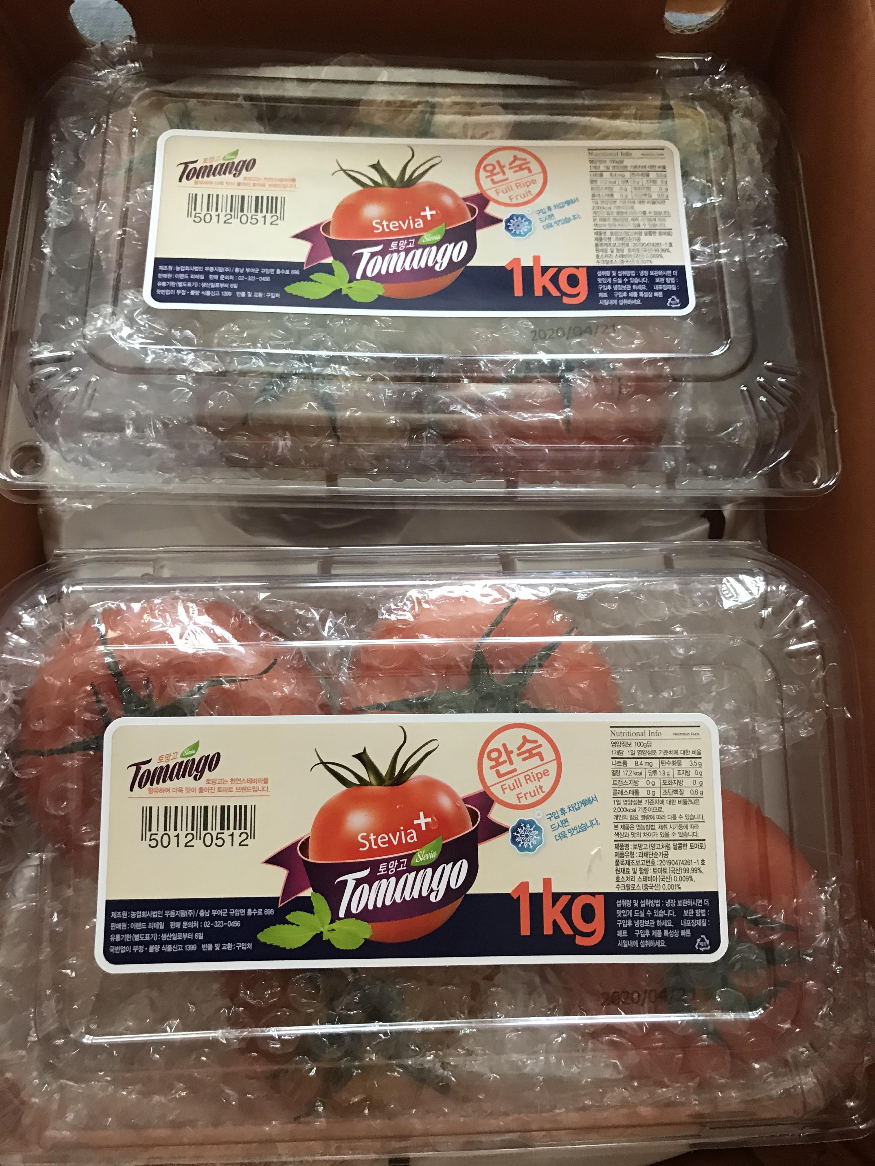 스테비아 토마토 2키로를 주문 했더니 1키로씩 포장이 되어 왔다