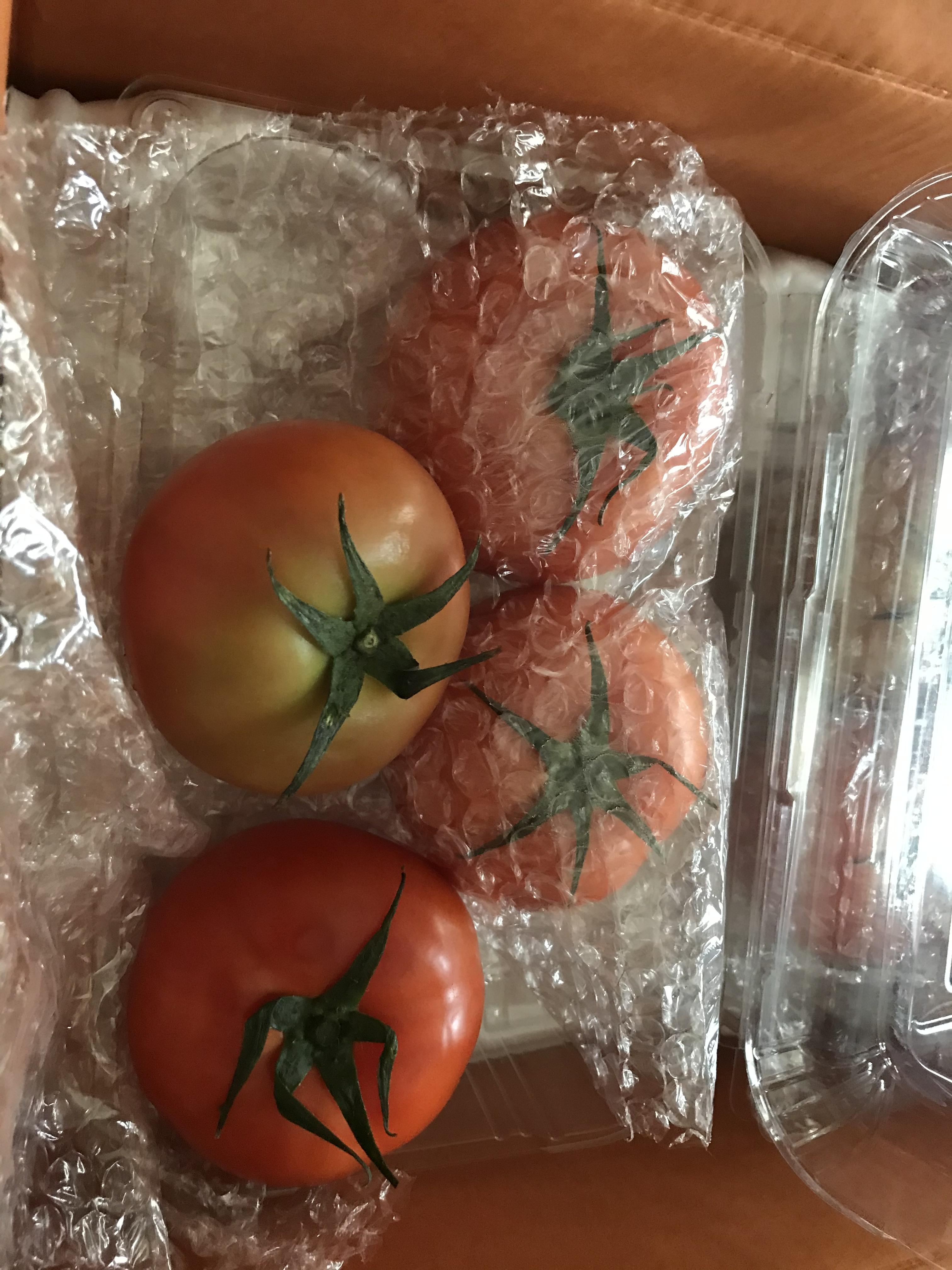 토마토를 스테비아 가스로 숙성 시킨 스테비아 토마토는 1키로 한상자에 4-5개가 들어 있었다