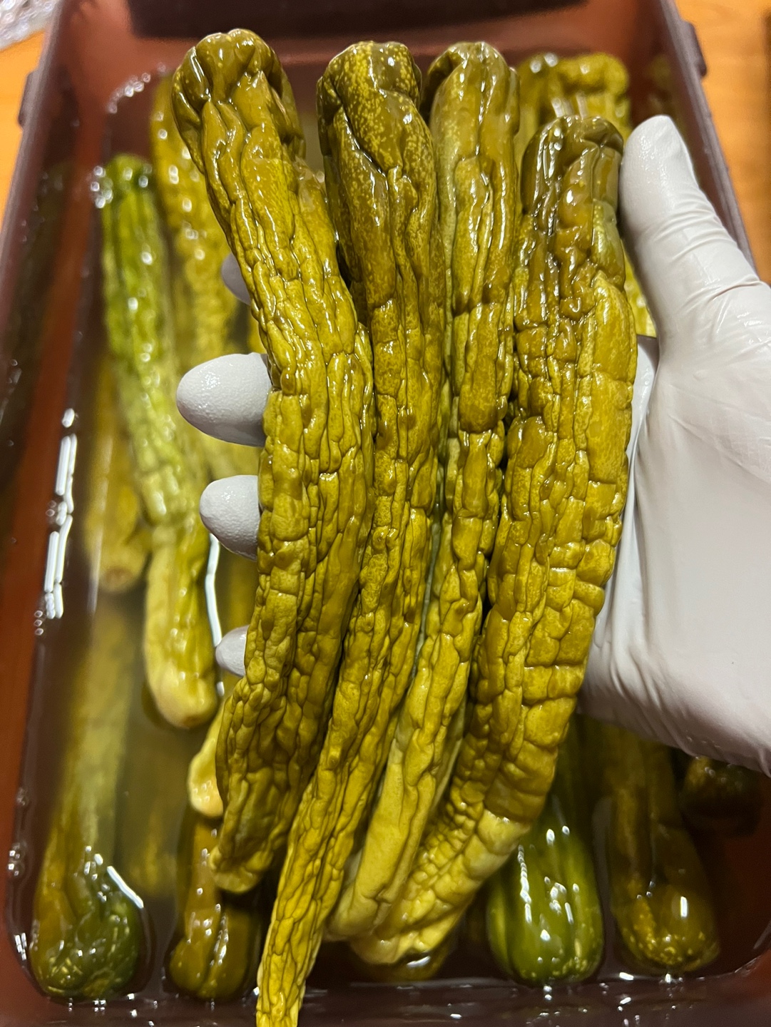 물엿을 부어준 후 5일이 지나서 오이지를 꺼내보니