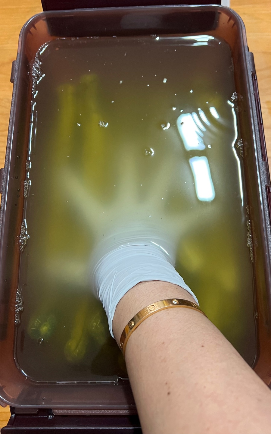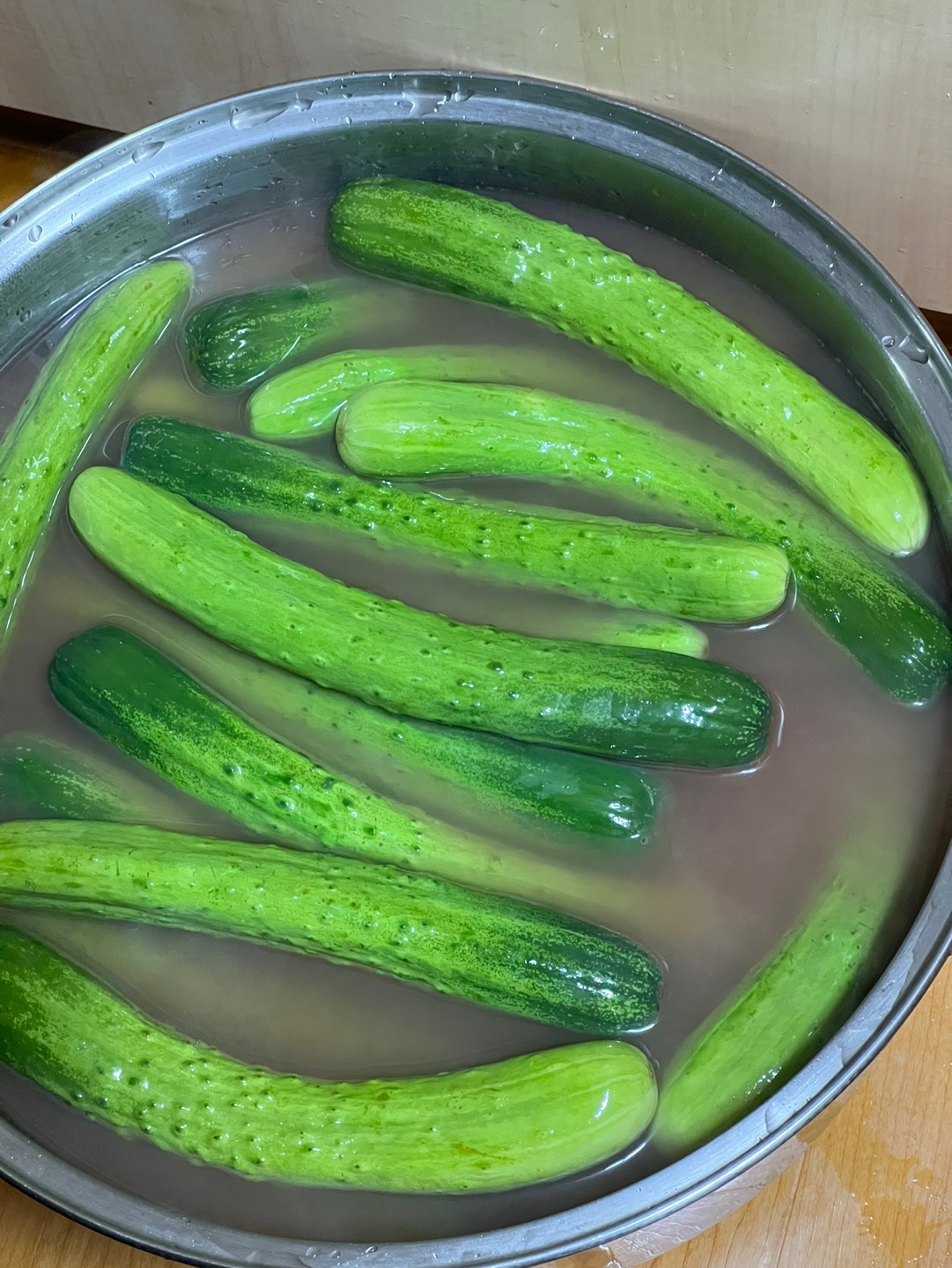 오이가 뜨지 않게 누름돌 대신 양푼에 물을 받아 눌러 하루를 보냈다