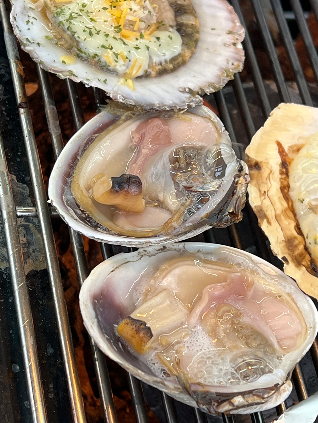 빨리 익는 키조개와 가리비를 먼저 불판에 올려 주셨다
