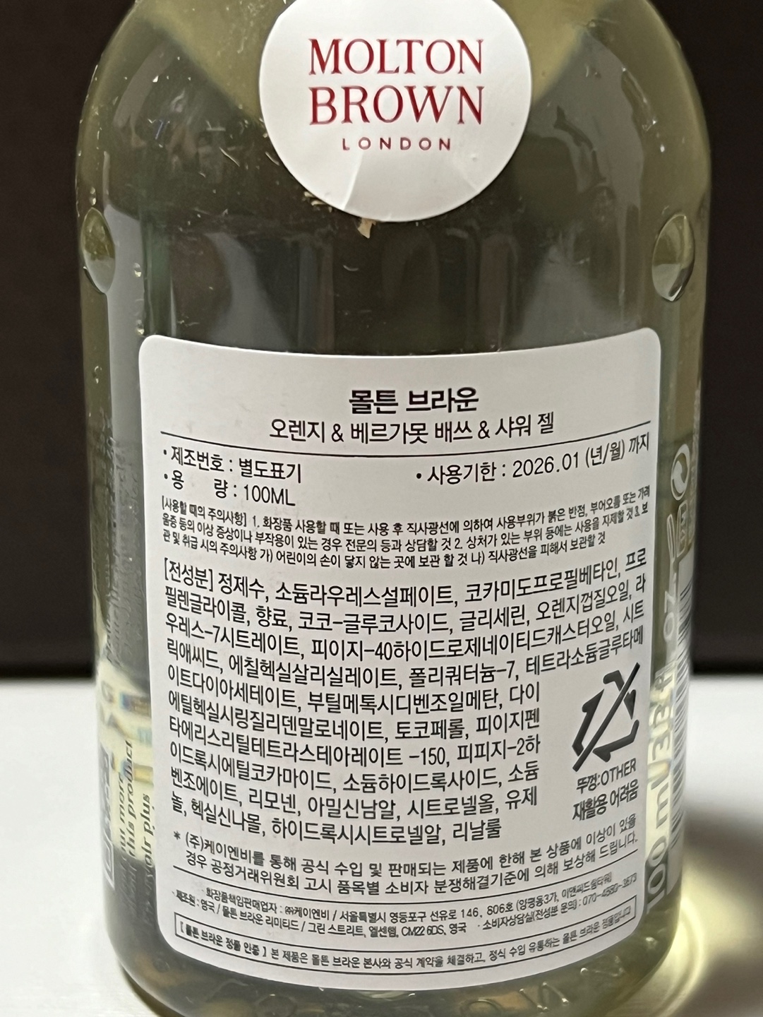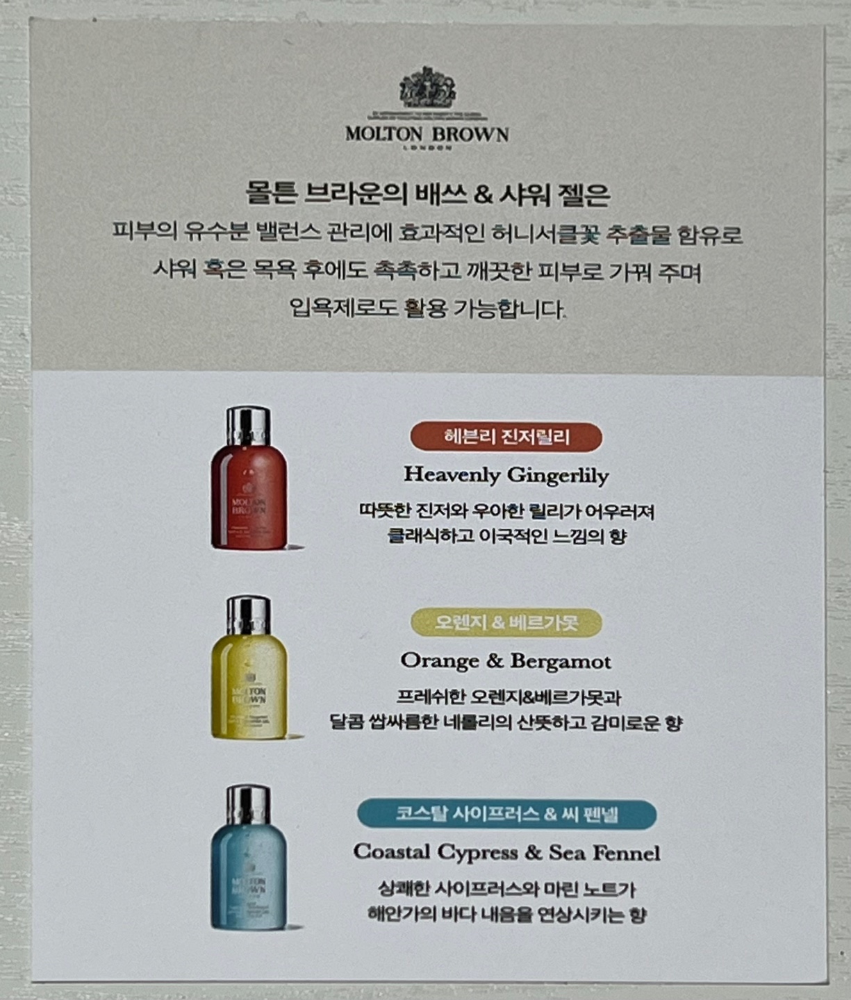 함께 들어 있던 몰튼 브라운의 배쓰 & 샤워젤