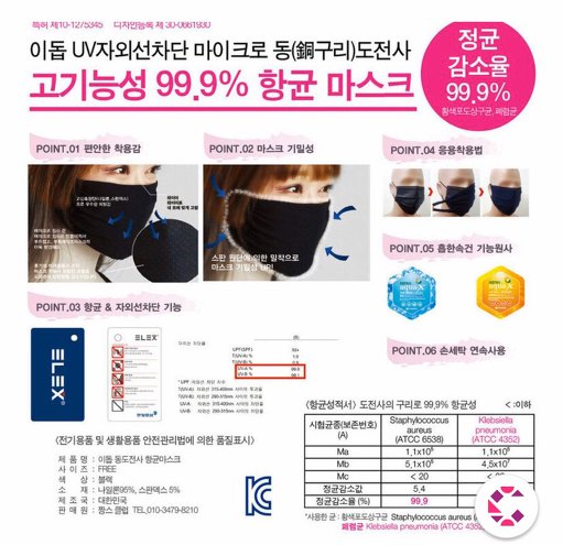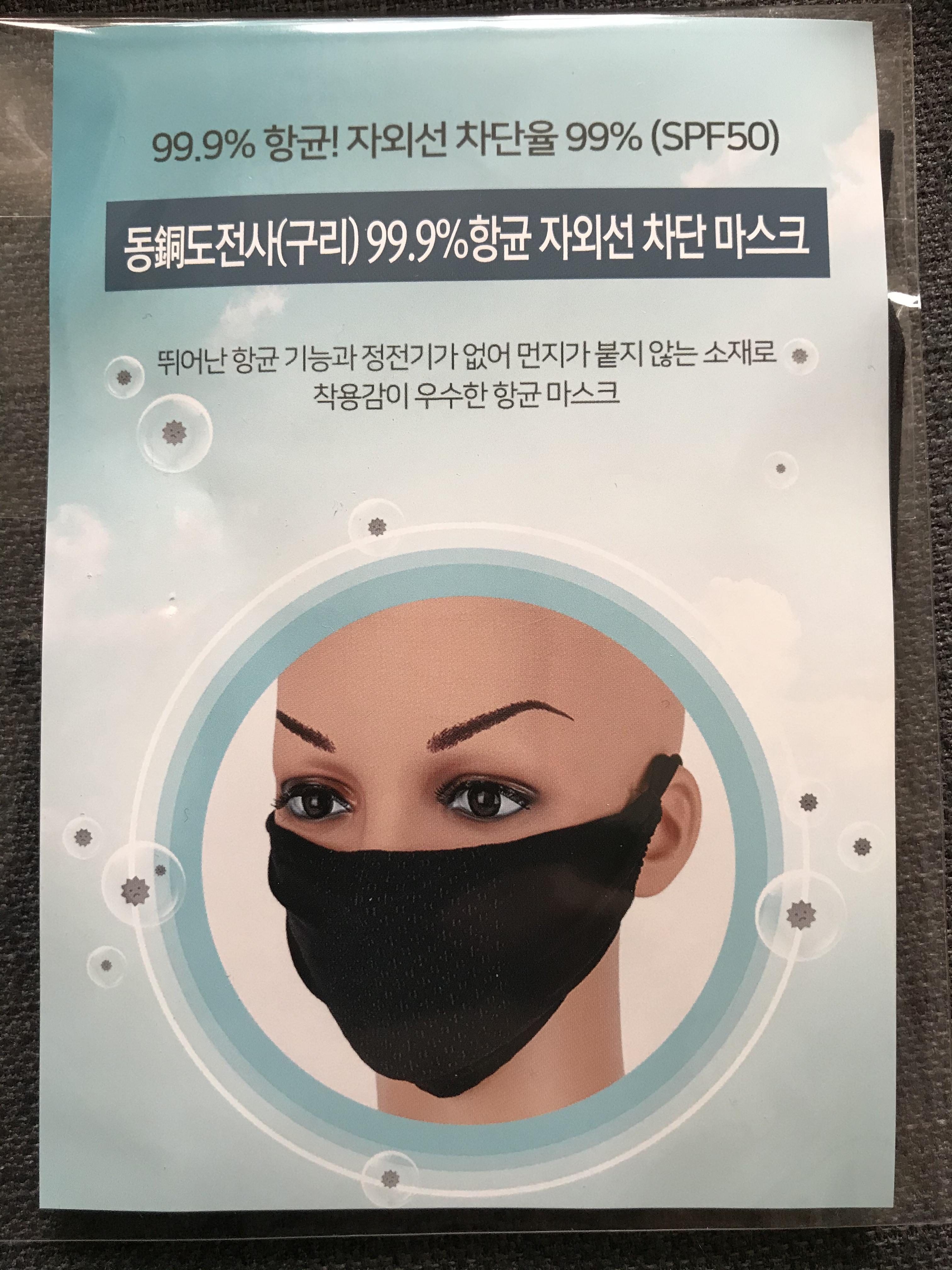 구리에서 1분 만에 바이러스를 99% 10분이면 거의다 사라지고 구리섬유 마스크에서도 바이러스가 죽는다는 기사를 보고 코로나19 예방을 위해 구리섬유 마스크를 주문 했다