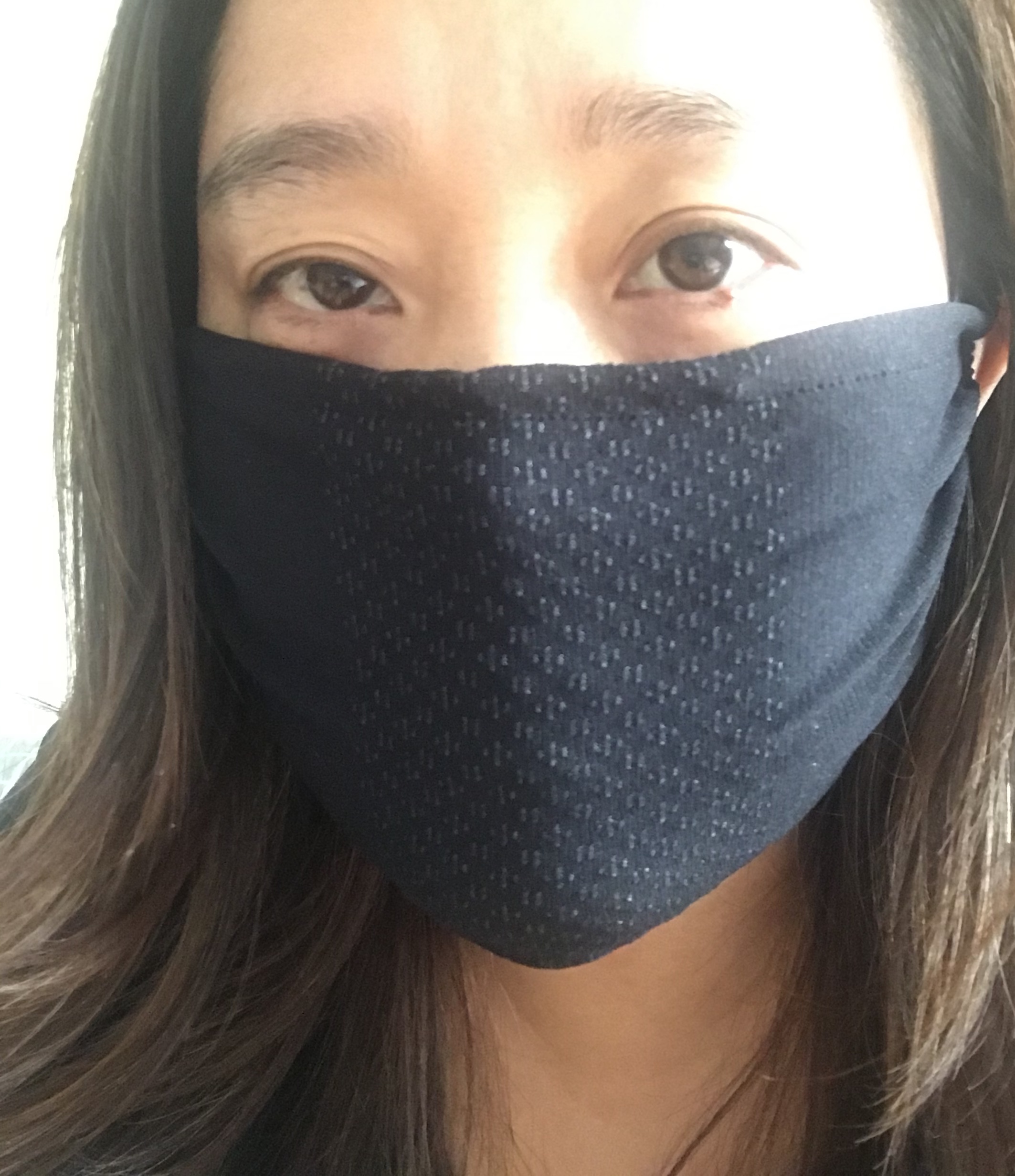 구리섬유 마스크는 피부에 밀착하듯이 착용된다 눈 밑에서 턱까지 완변하게 감싸줘서 좋다 코부분에 고정해주는 고정장치 철사? 가 있어서 딱 맞게 눌러 고정 할 수 있다 얼굴을 착 감싸줘서 바이러스 차단이 더 잘될것 같은 기분이다 구리섬유 마스크를 착용하고 움직여 보면 기존에 사용하던 kF80 마스크 만큼 숨쉬기가 힘들고 주변 냄새들도 비슷하게 차단이 된다 KF94 보다는 숨쉬기 편한것 같다