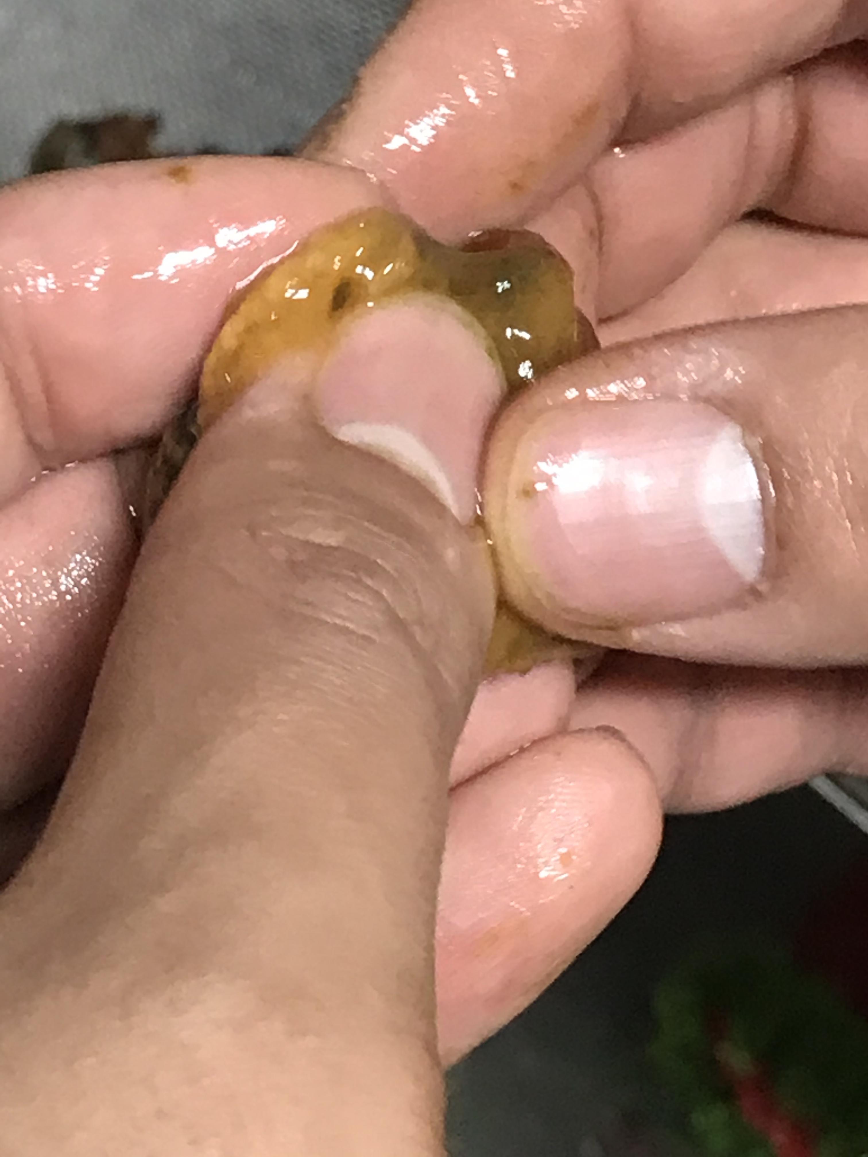 미더덕은 눈으로 봐서 살아 있는지 죽었는지 어떻게 확인 하는지 모르겠지만 몸통에 물이 통통하게 들어 있었다 포장을 열었을 때도 다행이 상한 냄새나 비린내는 나지 않았다