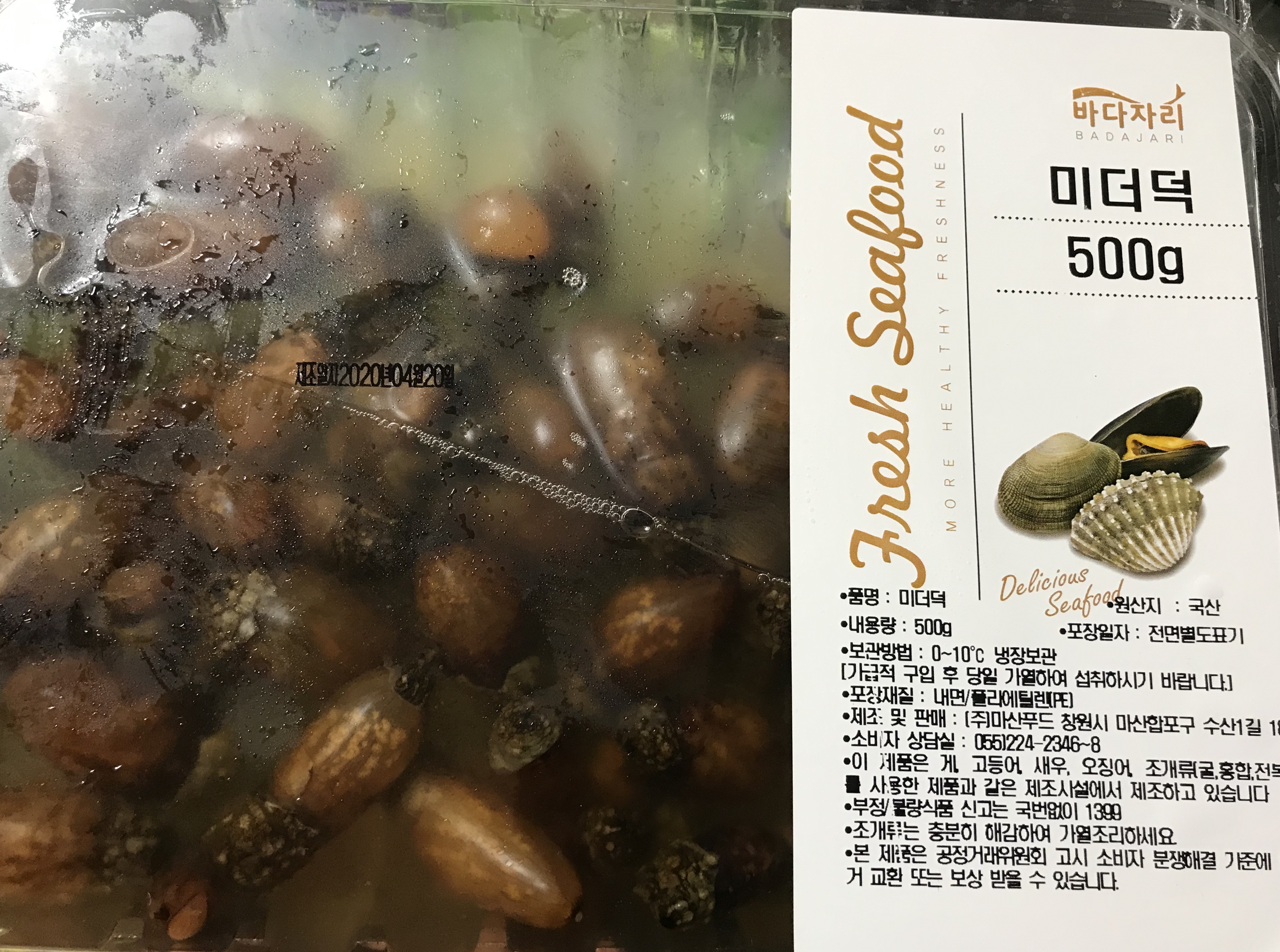 배송 되어 온 미덕덕은 500g 씩 포장이 되어 있었다 마트에서 판매하는 바지락이나 조개들 처럼 포장은 잘되어 있었다