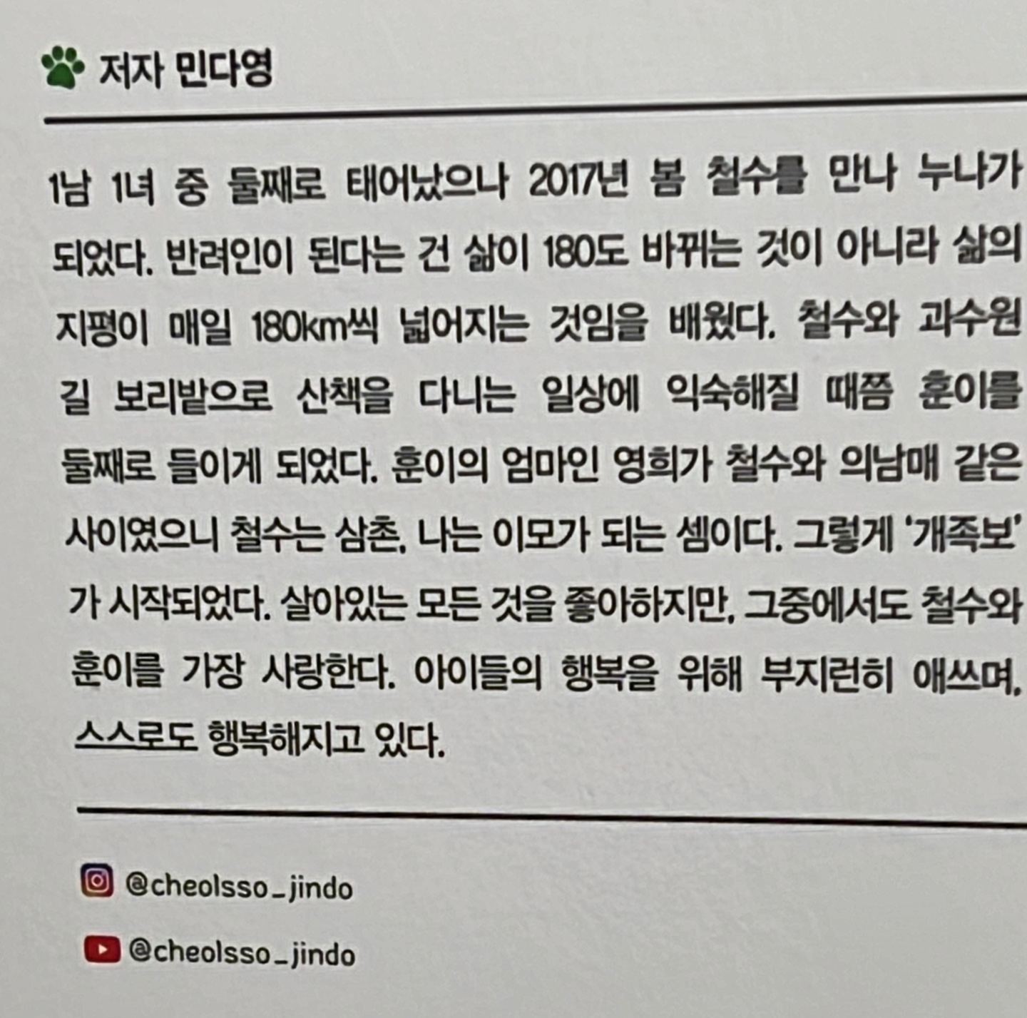 이 책은 반려인으로서 많은 생각을 하게 했고 과연 좋은 보호자 인가 반성도 하게 됐다