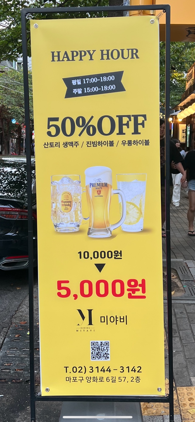 해피 아워 시간에는 하이볼을 50% 할인행사도 하고 있었다