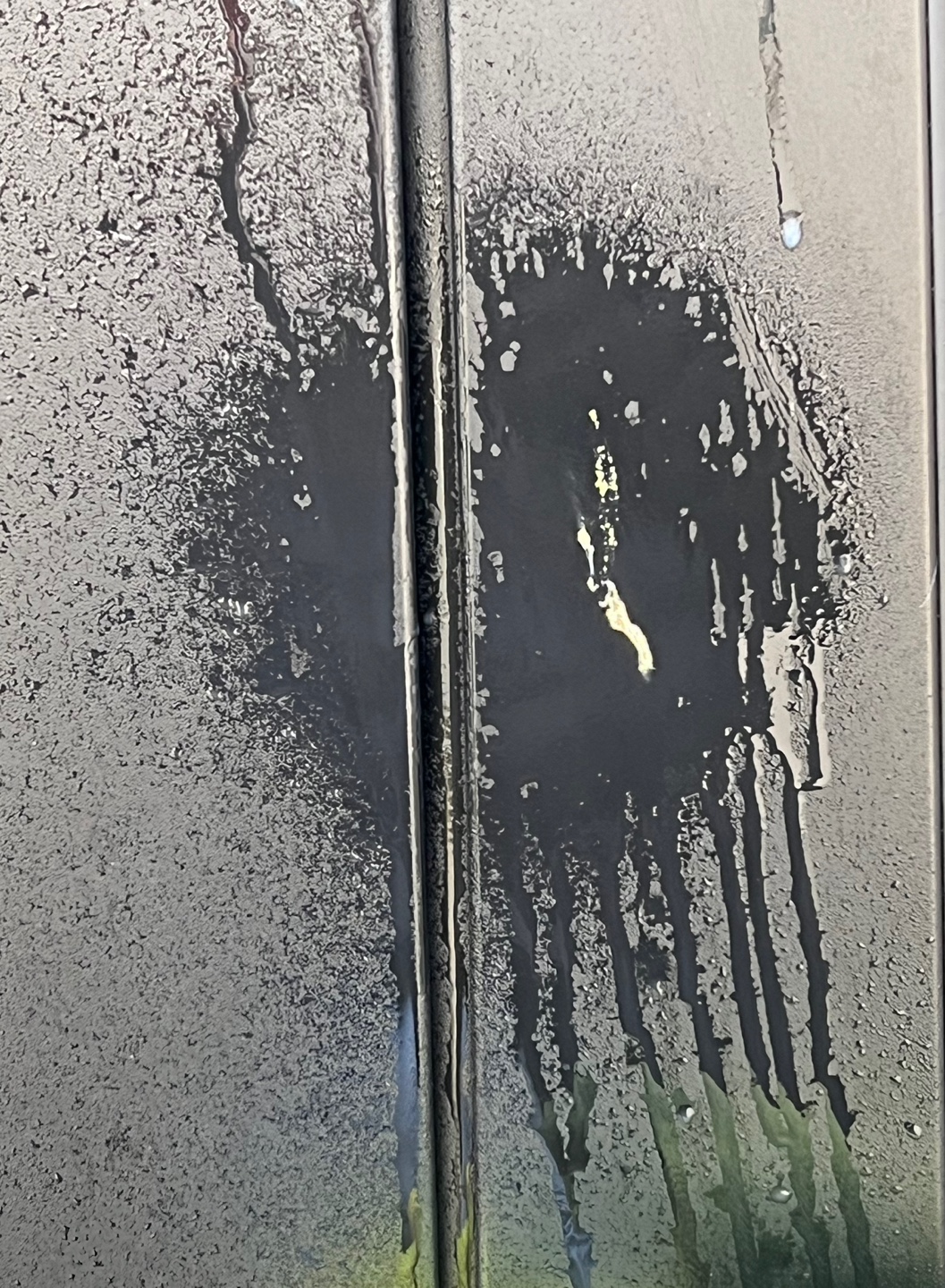 자동차 뒷문 플라스틱? 부분에 비둘기 변이 묻어 있었다