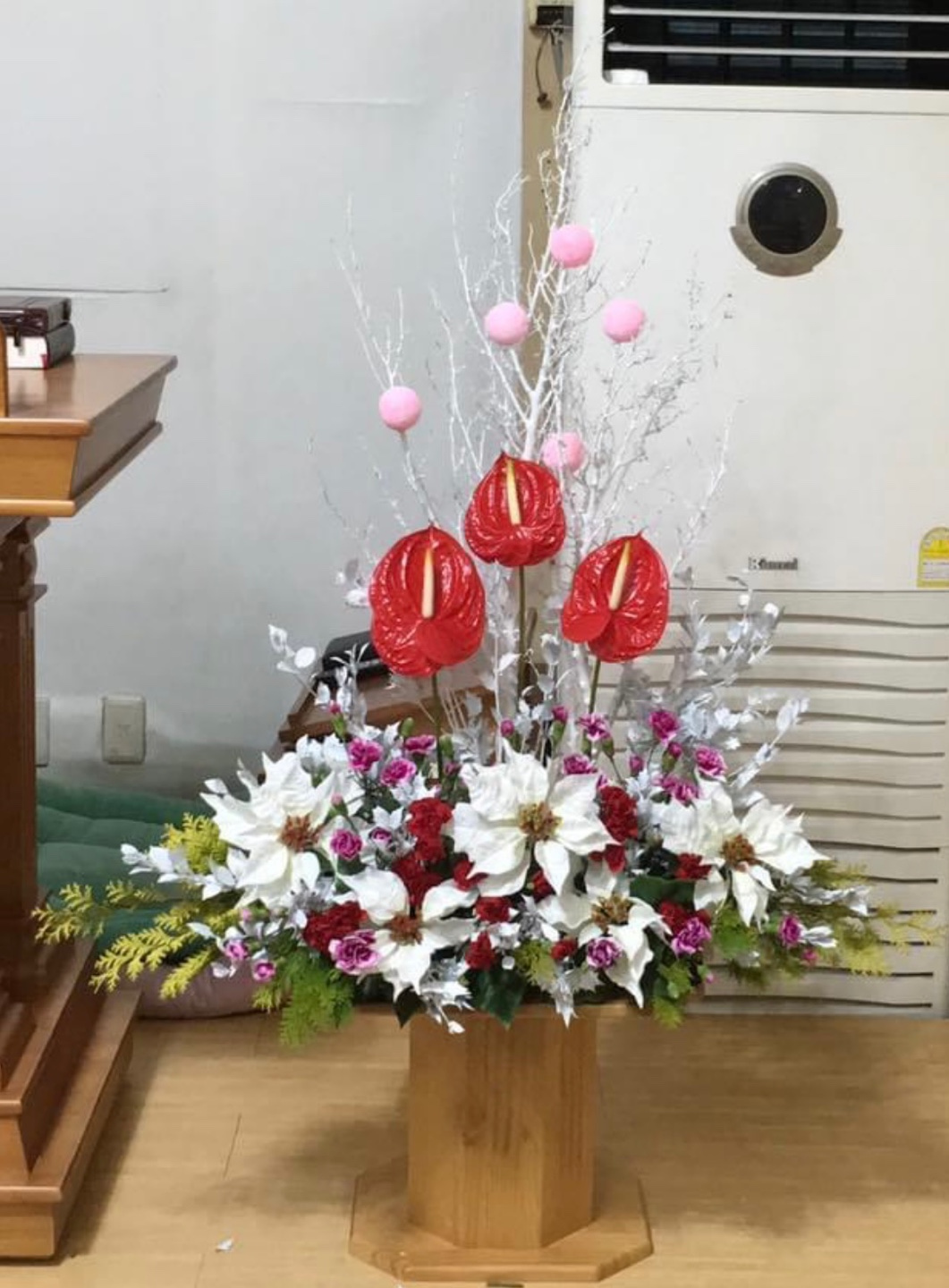 성탄절 꽃꽂이 헌금으로 들어왔다는 금액에 사비를 좀 보태서 나름 푸짐해 보이게 꽂아 드렸더니 너무나 좋아해 주셨다