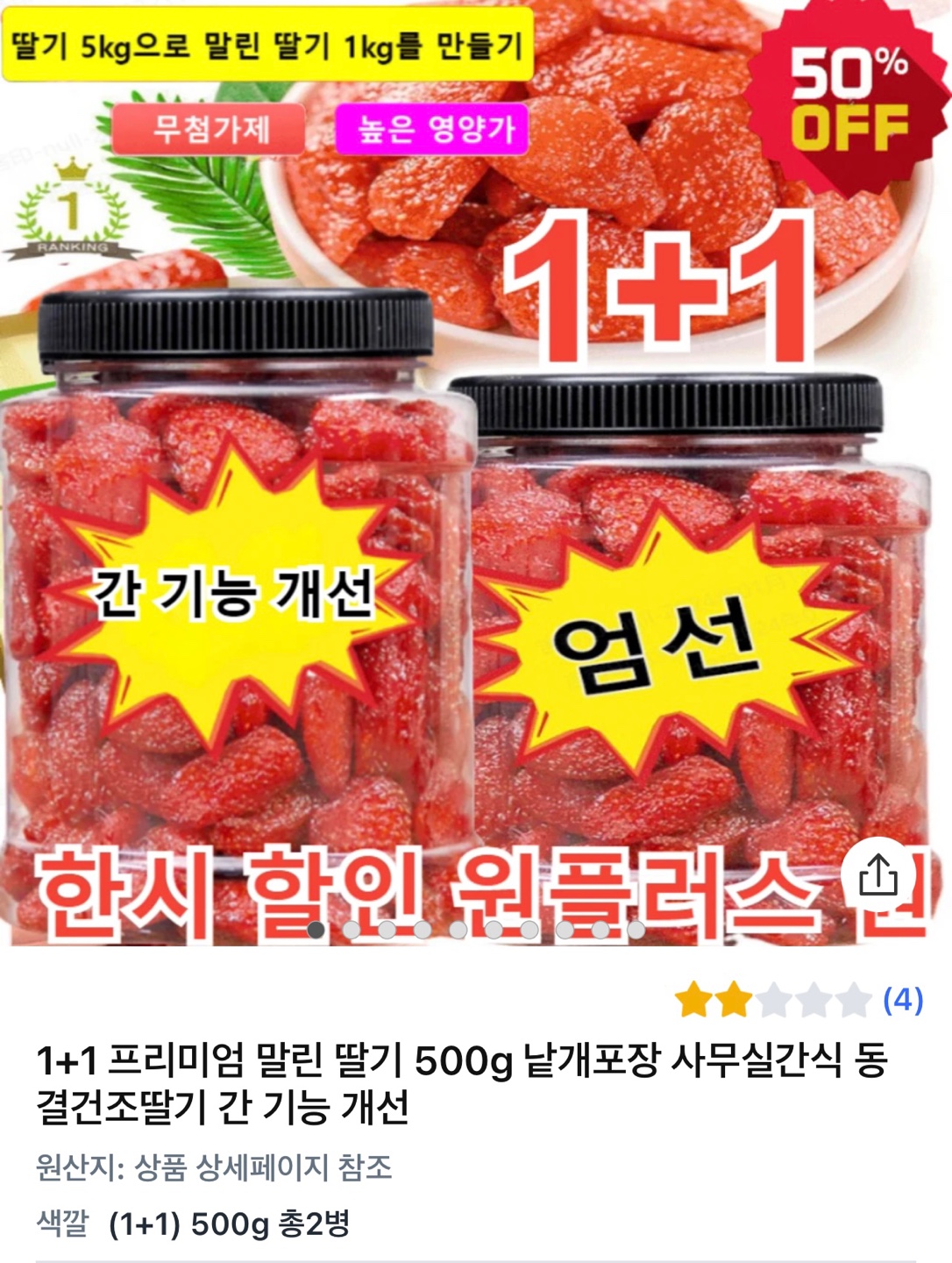 1+1 두통 딸기 140개 말려서 19390원이면 싼 게 맞는 거 같은데