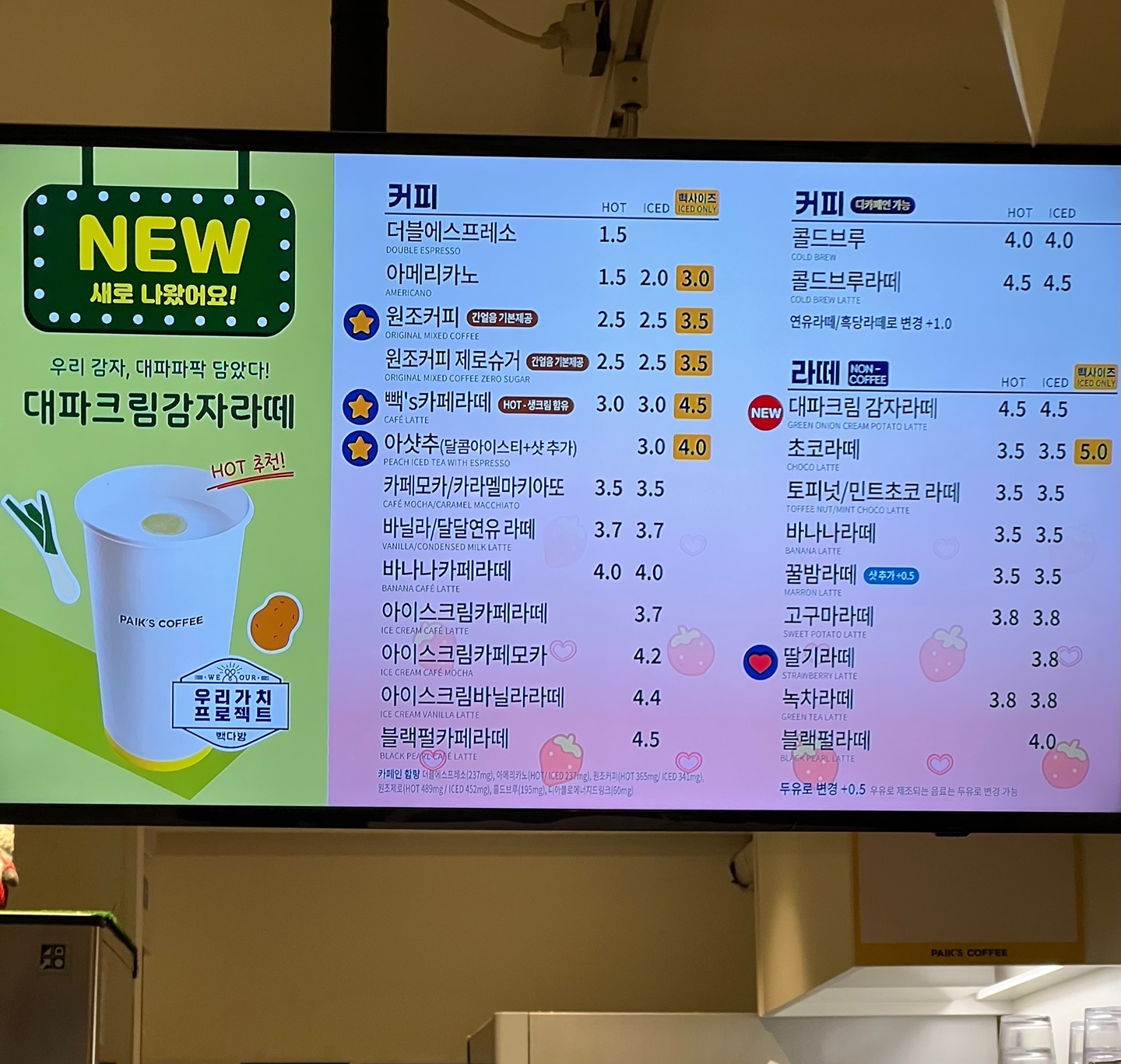 방송을 보고 빽다방 대파크림감자라떼가 궁금해서 빽다방으로 향했다