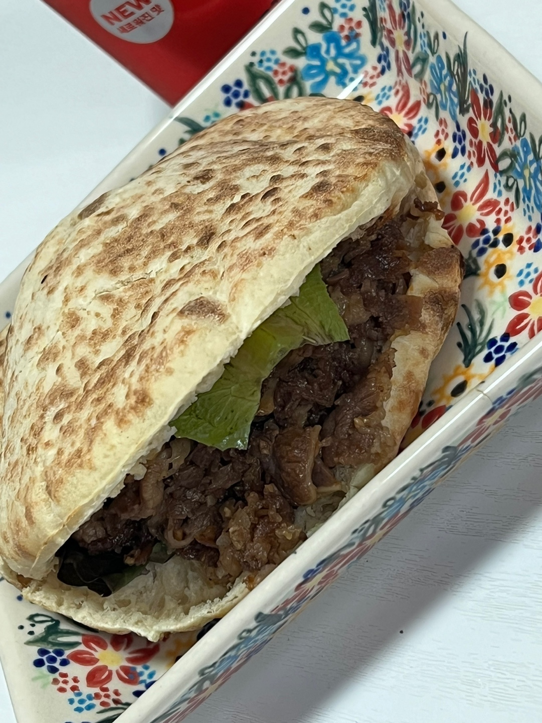 그리고 볶은 고기를 가득 넣어주면 우리 집 케밥 완성~