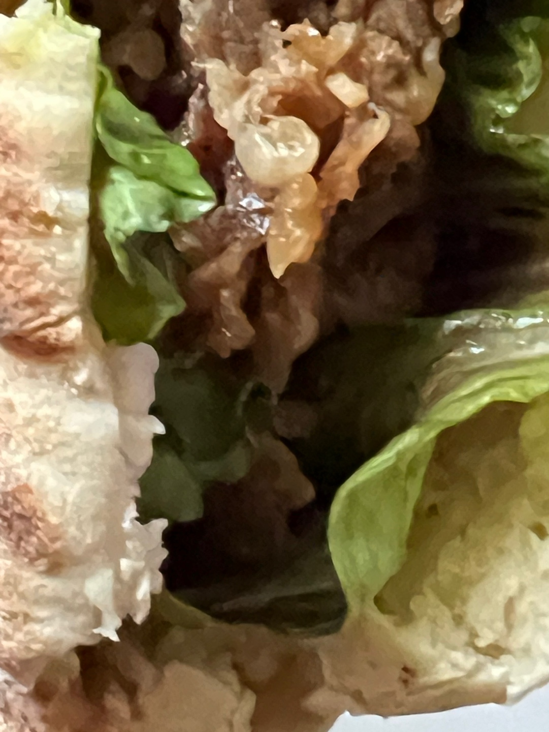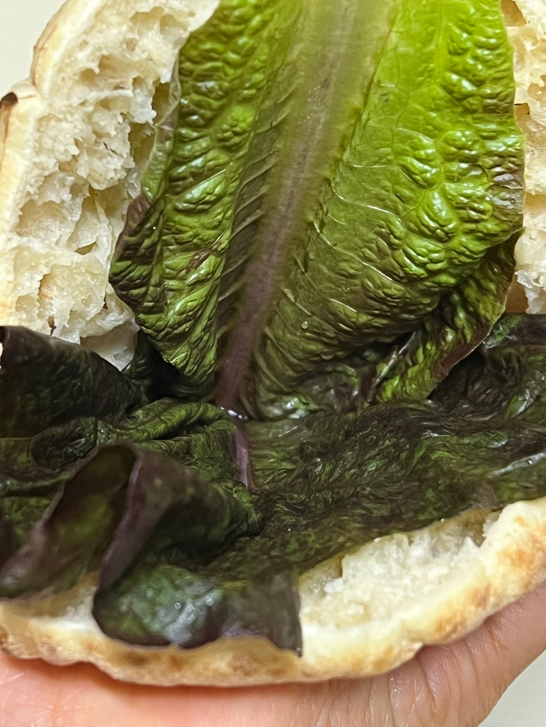 빵이 내용물에 젖어 축축해지는 걸 막기 위해서 상추를 넣어 주었다