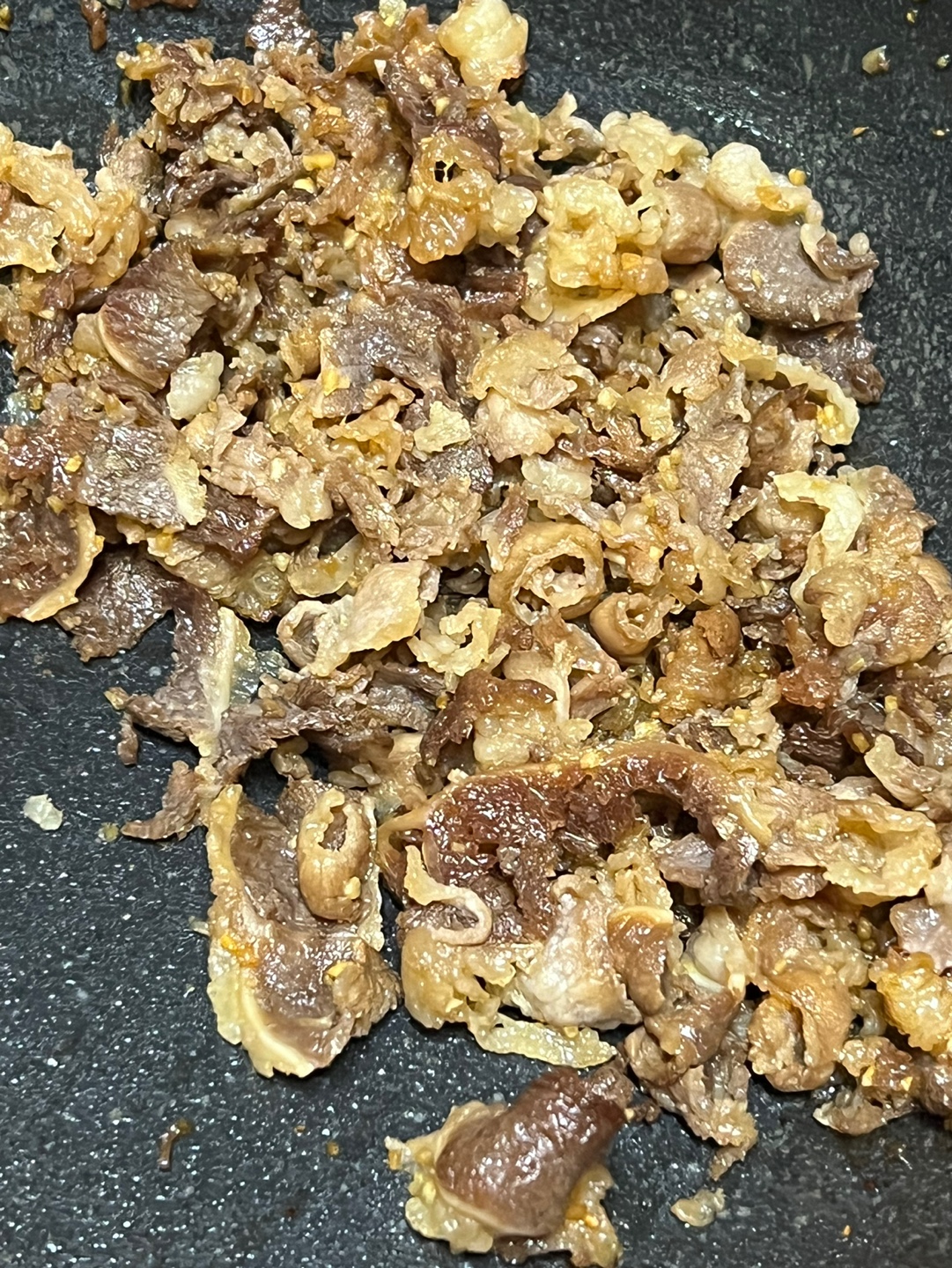 우삼겹에 마늘, 간장, 알룰로스, 굴소스를 넣고 볶아준다