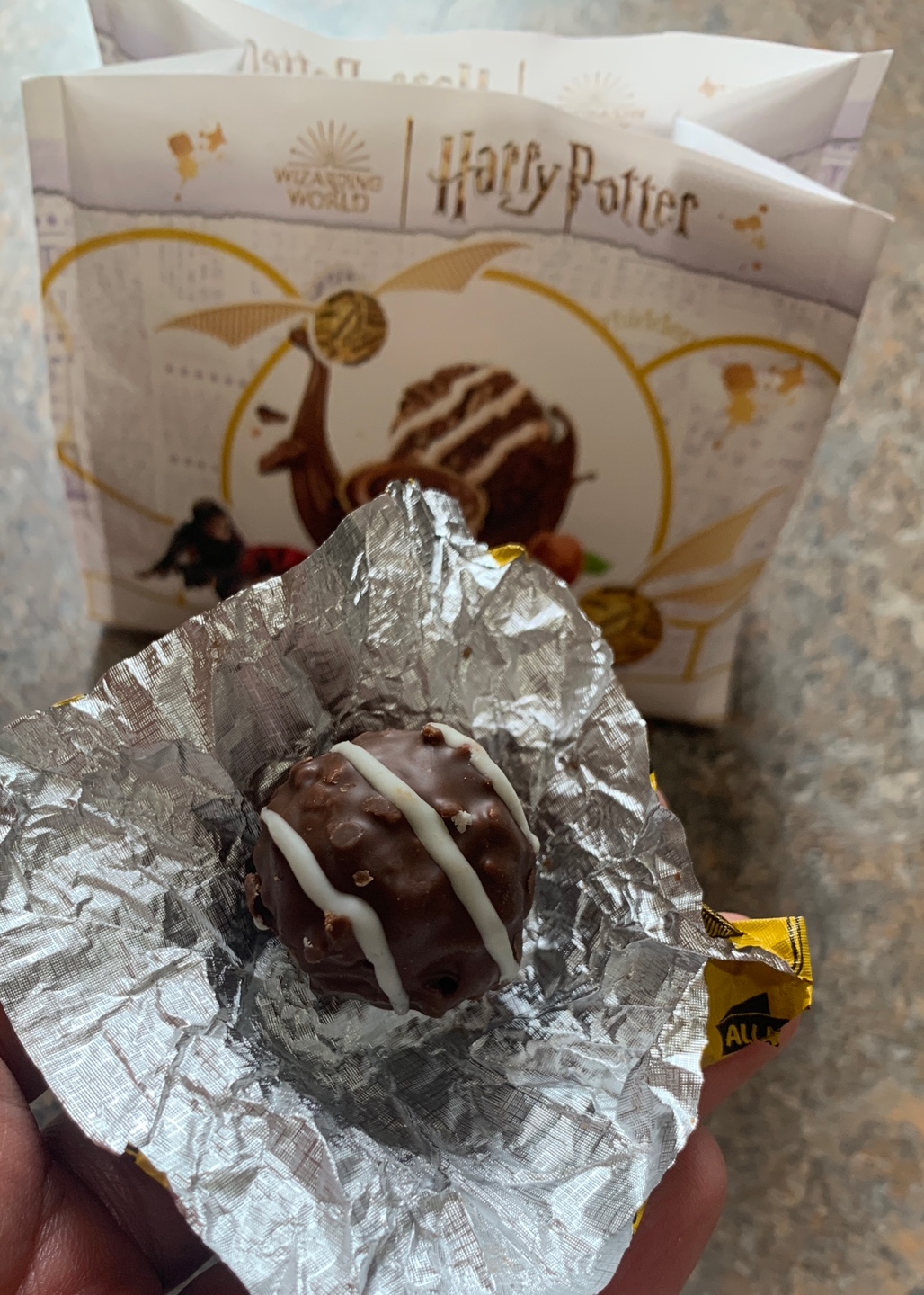 골든스니치 초콜릿은 페레로로쉐 초코볼과 비슷하지만 헤이즐넛 향은 페레로로쉐가 더 강하고 골든스니치 초코볼은 초콜릿에서 카카오향이 진하고 쌉싸름한 맛이 있어서 매력 있다고 한다