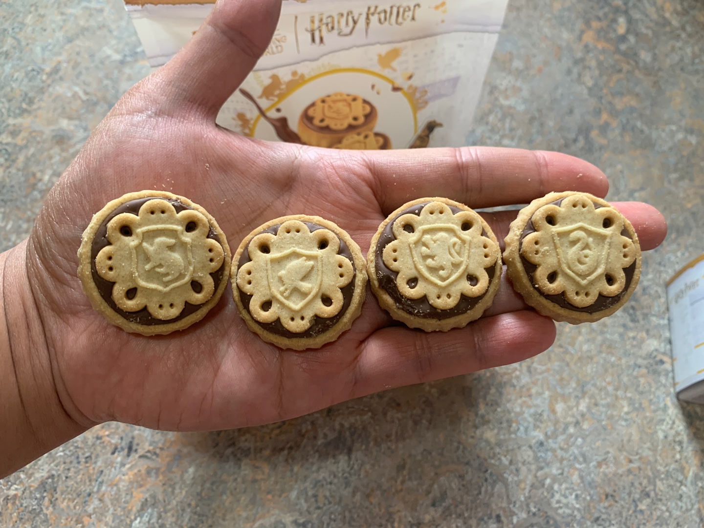 비스킷은 분류모자 비스킷이라길래 뭐지 했는데 비스킷마다 기숙사 마크 박혀있다 ㅋㅋㅋ