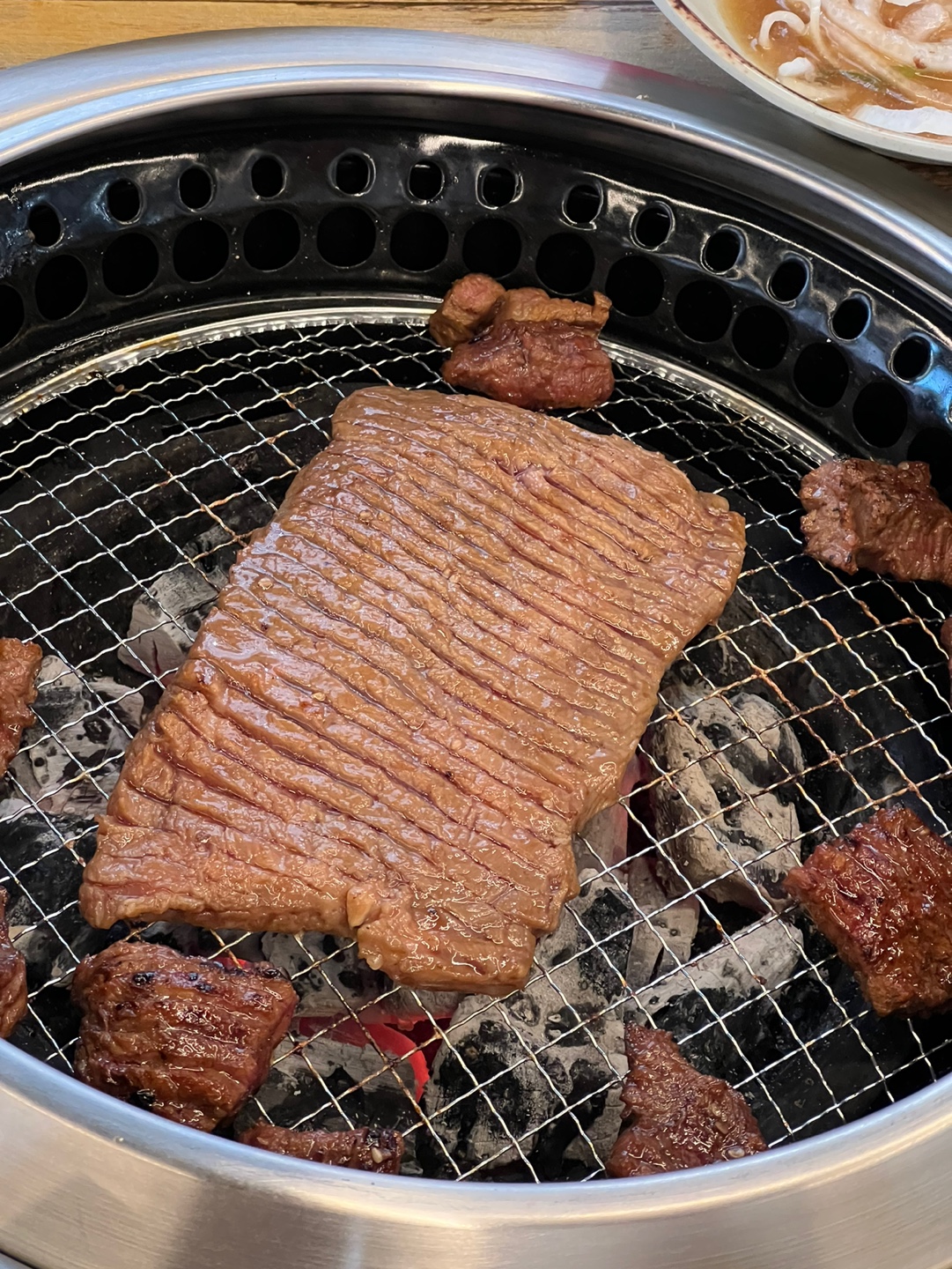 고기를 자르지 않으면 먹을 때 고기가 줄줄 따라 나와서 먹기가 불편했다