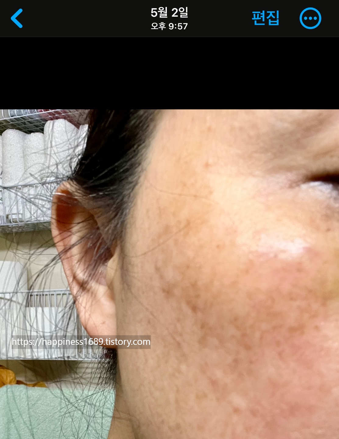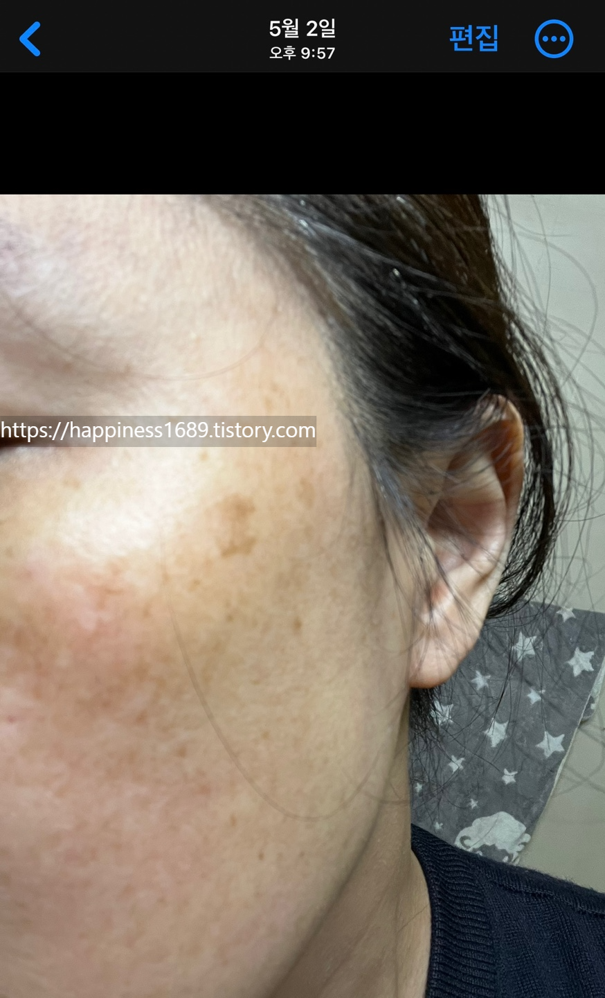 이미 진한 기미는 모르겠고 주변 연하게 깔려 있던 기미는 조금 옅어졌다