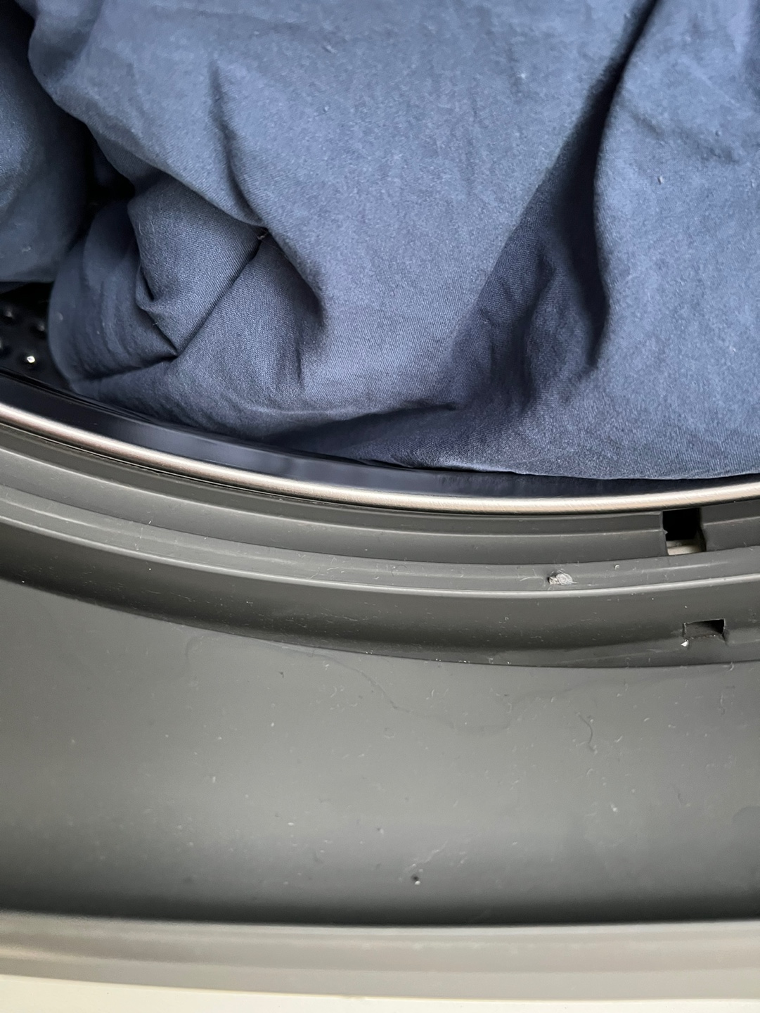 세탁기의 고무 부분에도 먼지가 붙어 있는 게 보인다