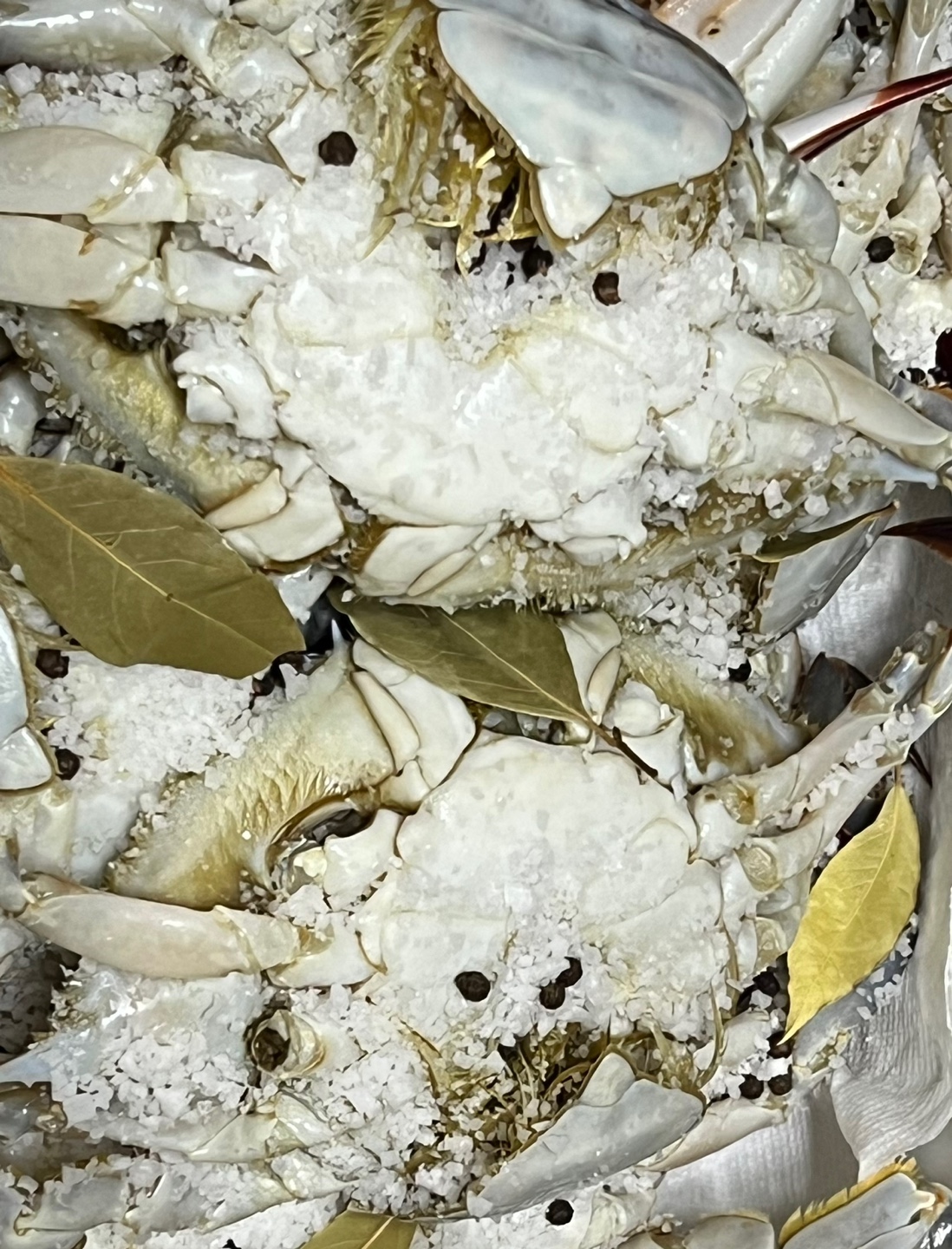 재료: 싱싱한 꽃게, 소금, 통후추, 월계수잎을 준비한다