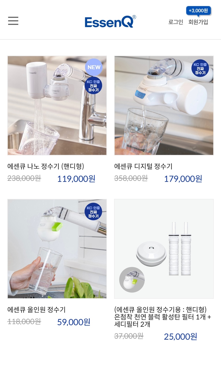 에센큐 나노 정수기(핸디형), 에센큐 디지털 정수기도 있어서 선택의 폭이 넓어져 있다
