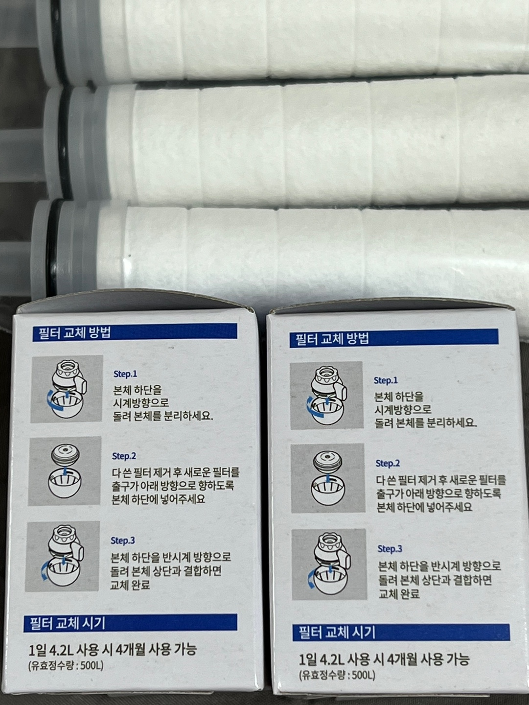 정수기 교체 시기가 되어서 배송비를 아끼려고 두 세트를 주문했다