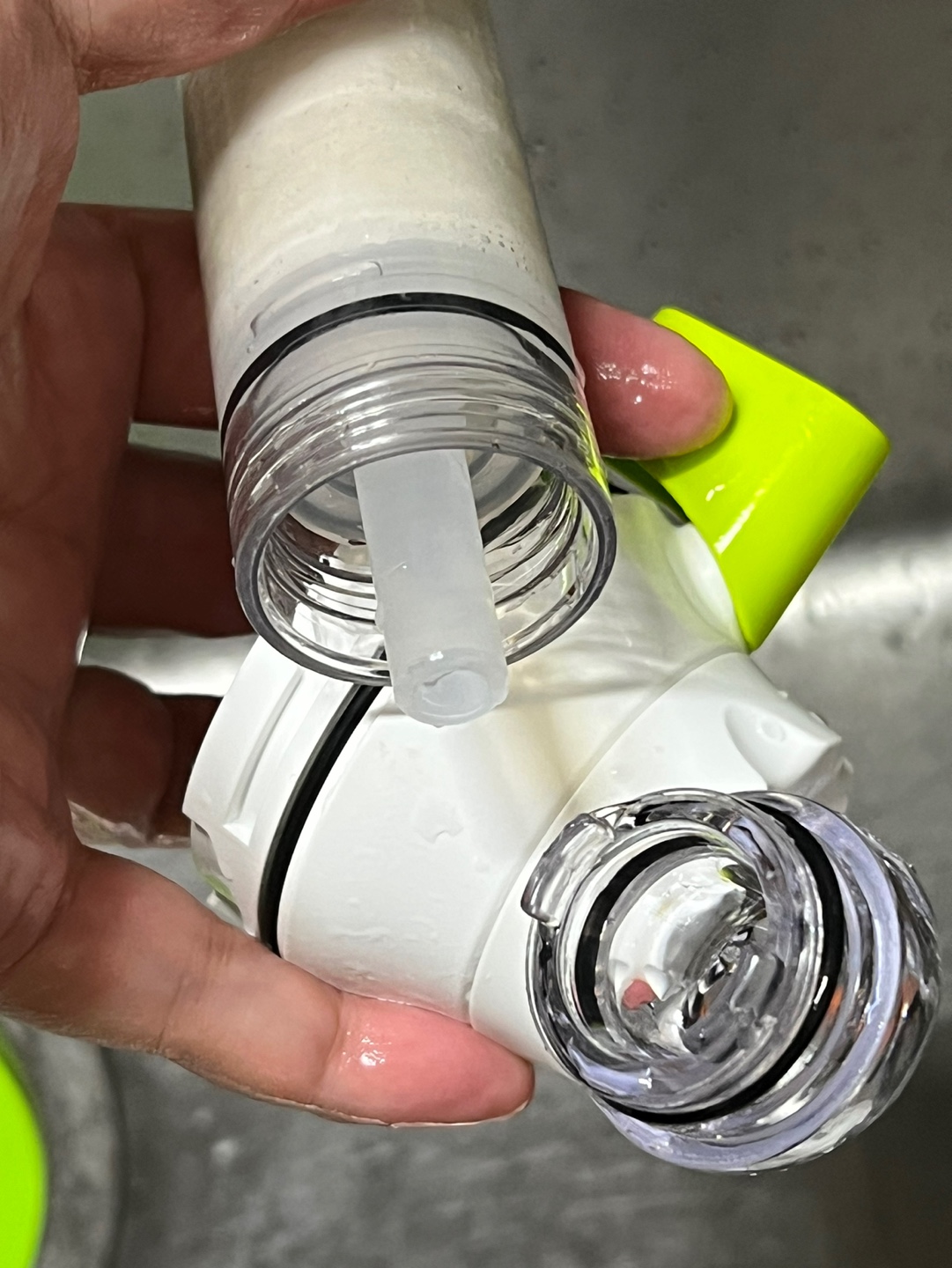 에센큐 올인원 정수기를 오래 사용하다 보니 여과필터를 교체한 후에 헤드와 몸통을 연결하면 연결 부위에서 물이 세는 경우가 있었다