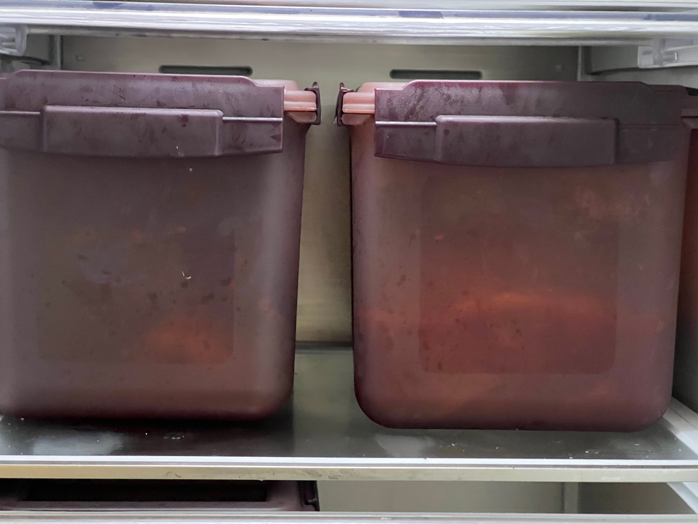 그래서 나는 김치통에 종이테이프로 내용물을 적어 붙여두면 금방 찾을 수 있어서 그 방법을 사용하고 있다