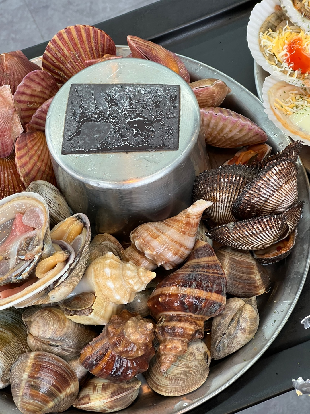 불판에 조개를 올린 다음에 사진을 찍어서 조금 비어 보이지만 정말 푸짐하게 나온다