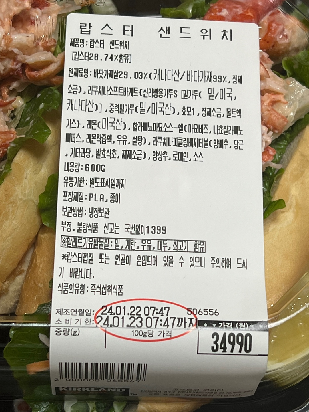 코스트코 랍스터 샌드위치가 3개 34,990원이니까