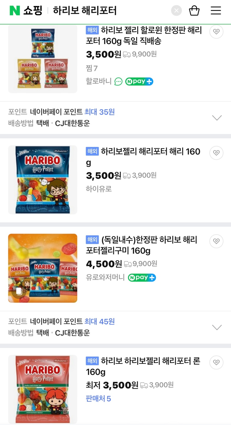 하리보에서 해리포터 젤리가 나왔다고 신나서 사진과 메시지를 보내왔다